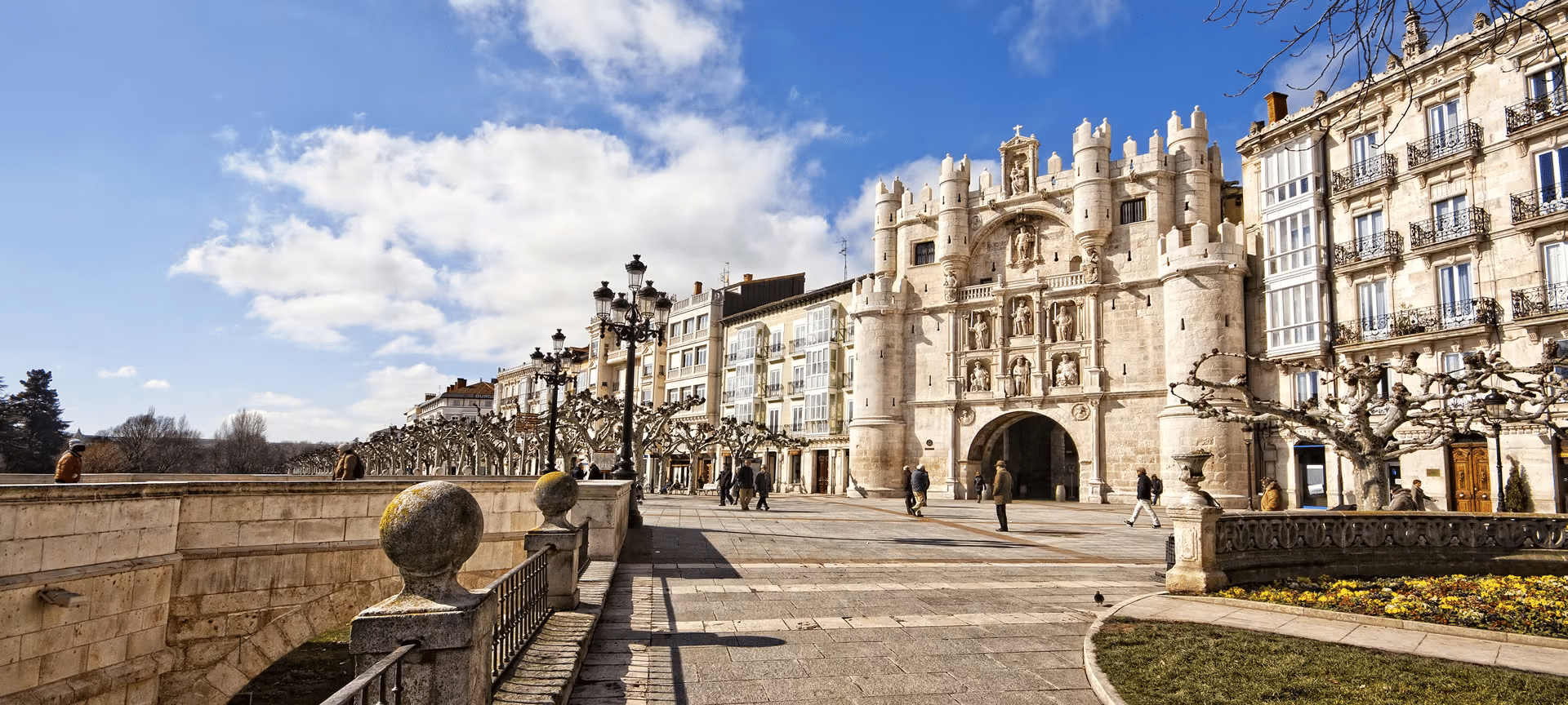 Uno de los espacios más representativos es el Paseo del Espolón, un lugar de encuentro para burgaleses y visitantes que conecta algunos de los puntos clave de la ciudad en un entorno agradable junto al río. Muy cerca, el Arco de Santa María recuerda el pasado medieval de Burgos y su importancia histórica.