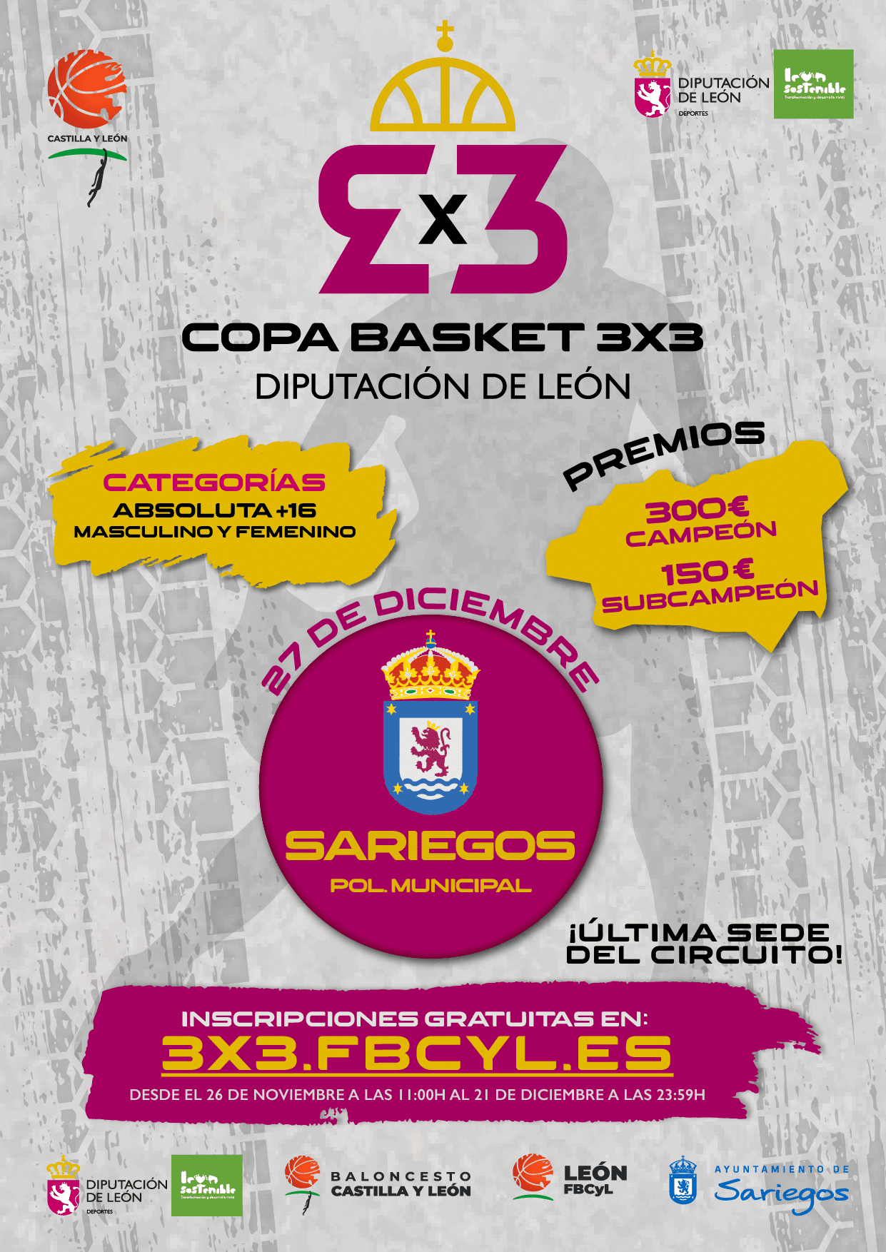 Sábado 27 de diciembre de 2025. Polideportivo Municipal – Sariegos (León)